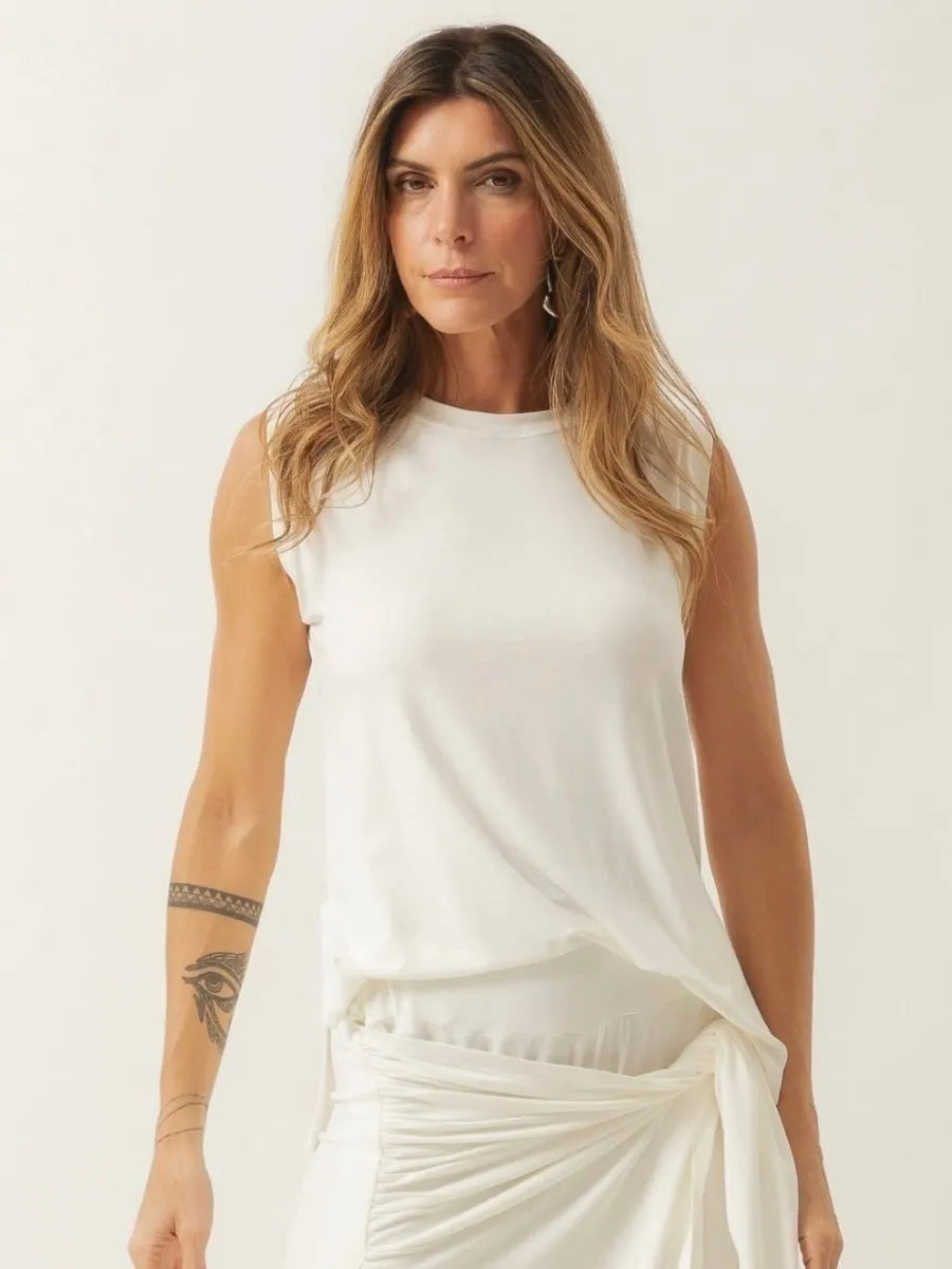 The Kimono Off White Blouse is a must-have for women who appreciate refined simplicity and comfort. With thick straps, a relaxed fit, and subtle side slits, it offers both ease and sophistication.