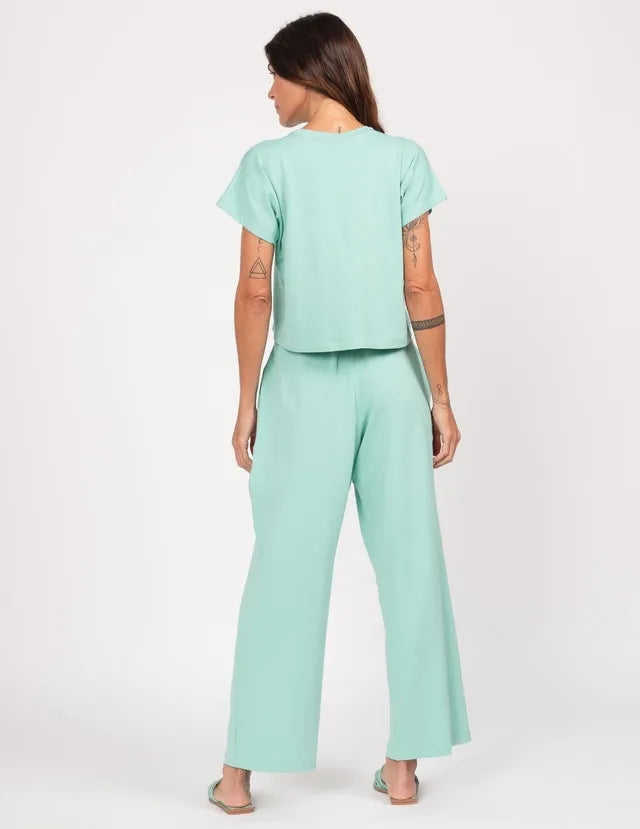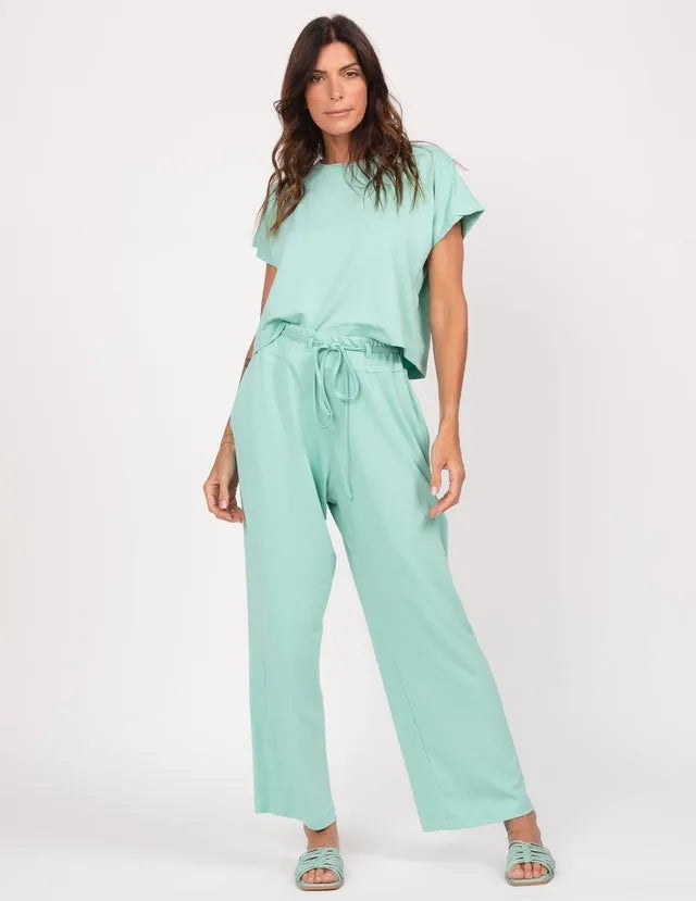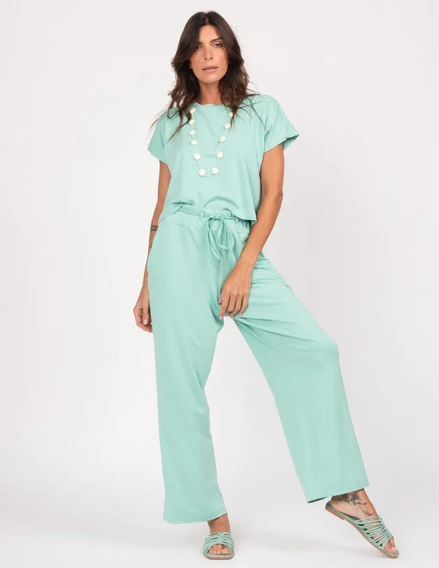 The Salamanca Pistachio Set is all about freshness and elegance in one effortless look. Crafted from a thick sweatshirt fabric with elastane, it combines structure with comfort, ensuring a soft touch and fluid drape.