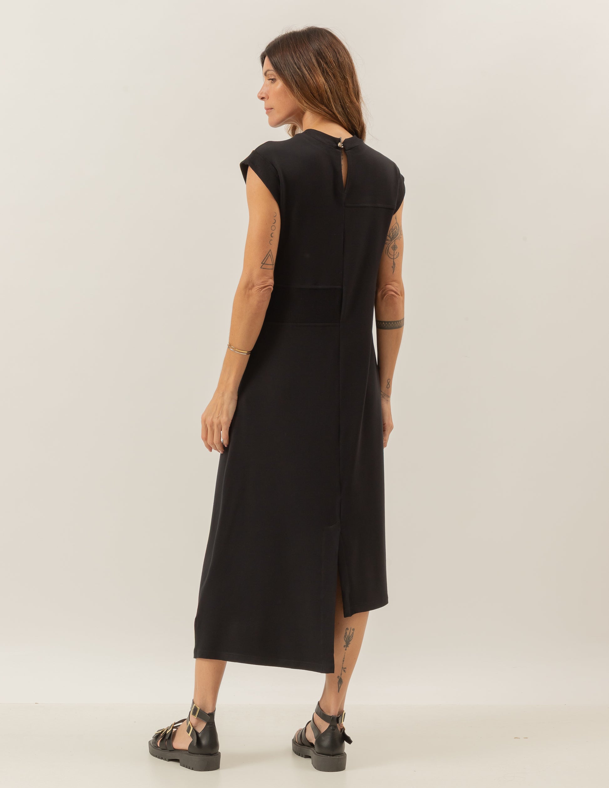 In classic black, the Jordana Dress becomes an essential base for countless outfits. It transitions seamlessly from casual daytime looks with sneakers or flats to more sophisticated evening styles when paired with heels and statement accessories.