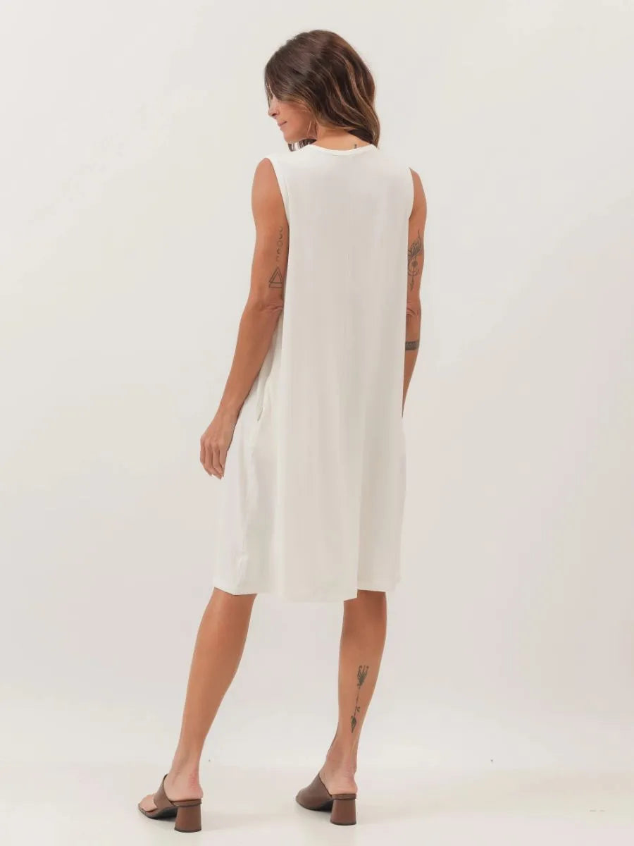 Radiate freshness and sophistication with the Liz Off White Dress, a timeless piece that embodies comfort and minimalist beauty. Designed in soft viscose lycra, it offers a smooth touch and a relaxed feel, perfect for warm days.